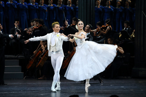 首次为《蓝色多瑙河》编排的双人芭蕾把多瑙河优美的意境表现得淋漓尽致 王小京/摄