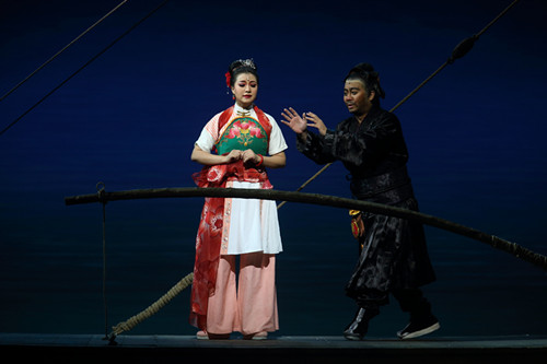 “一条运河千里长,运河两岸是故乡;一条运河千年久,涛声浆影岁月流”,由国家大剧院与中共北京市通州区委、北京市通州区人民政府联合主办的原创民族歌剧《运河谣》,18日晚再次与观众见面。该剧以民族唱法为载体,以京杭大运河为背景,并以这条千年长河的视角讲述了明朝万历年间,耿直的书生秦啸生与流浪艺人水红莲和凄楚盲女关砚砚三人偶然交会于运河之上,共同经历了一段漂泊跌宕的悲欢离合与令人唏嘘的善恶生死,作品展现了深邃的情怀和美好的人性。