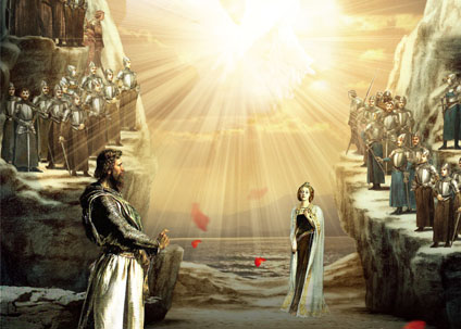 在已经问世的世界各版本《罗恩格林》中,最具看点同时也是最令观众期待的场面应该是天鹅载着圣杯骑士罗恩格林登台的场景。在大剧院即将上演的这个版本中,这个极具神话色彩的片段,又将如何呈现?大剧院方面透露,届时岩石会被一束“激光”劈开,一只天鹅将由远而近徐徐飞来,降落在沙漠中,圣杯骑士罗恩格林这时便会出现,整个场景将由多媒体投影完成,带给观众电影般的细腻质感。强卡洛说:“罗恩格林是从神界来,所以他的降临也将充满着神话的浪漫色彩。这将是整部歌剧的一个转折点,观众会看到一幅犹如3D电影的神奇画面。”