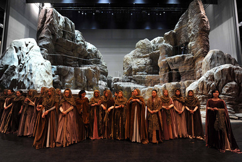 除了波拉班德岩石山的震撼效果,《罗恩格林》舞美中的每一个细节也都做到了精益求精。据大剧院方面介绍,巨岩的高度和每一层合唱演员站立的位置都是经过剧组反复推敲的,力求达到观众最佳的听觉效果,并且工作人员在制作时也考虑到了布景的承重和安全性。强卡洛表示,这样的合唱阵型要较之普通排列的队形更能使合唱的整体声效凸显出来。而地面则使用帆布绘制出沙漠效果,画布表面有肌理感。地布被固定在舞台面上,演员踩在上面不易滑动,画布的肌理、形象与岩石的背景很好的吻合在了一起。著名舞美设计师高广健告诉记者:“《漂泊的荷兰人》中的大船相对更容易建造,而这部歌剧里岩石荒山的细节纹理则完全要靠良好的技术工艺和艺术感觉去完成,十分不易。”
