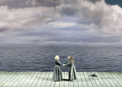 国家大剧院版《漂泊的荷兰人》不仅力图表达出瓦格纳这部作品中爱情与命运交织的冲突、牺牲与拯救的深邃命题,并且在舞台呈现方面开拓创新,运用写实与写意相结合的方式,在舞台上营造出比电影镜头更加细腻而真实的质感:阴森恐怖的幽灵船,薄纱、丝绸与12块大幅投影幕布结合高科技手段的巧妙运用,逼真表现出大海上波涛汹涌、狂风肆虐的场面,使观众能够身临其境地感受到荷兰人那天涯孤旅漂泊的凄惶以及最终经受爱情救赎后的悲悯与平静。