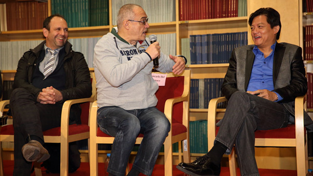 左起:“荷兰人”托马斯·卡则里、导演强卡洛、“年轻猎人”莫华伦 王小京/摄