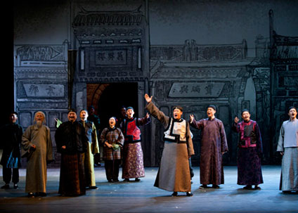 由北京人民艺术剧院优秀演员于震担纲饰演的“禄顶鸿”帽店少掌柜佟寿春,有力地撑起了全剧的主干经脉,北京人的气节与风骨也在他身上得到了放大式的呈现:他宁折不弯、刚毅大气,不仅有仁有义,更有情有节,为了初恋云儿,他与王爷一生较劲;为了帽店的声誉,他和哥哥冒死抓海龙;为了心中那块沉甸甸的老匾,他又不惜在肖满金的威胁淫威下,愤然砸烂了自家的招牌……于震将一个顶天立地的男人演绎得既令人倾心佩服,也让人揪心动容,尤其是他带领王府井众商家老少爷们儿舍命担保蔡仙儿的一场戏,当那一声声“我担保!”的誓言响彻在剧场中时,引得不少观众动情落泪。