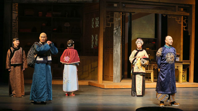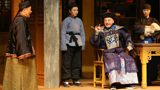演出时,一跨入大剧院戏剧场前厅,浓浓的老北京风情便扑面而来:搭建起来的“禄顶鸿”帽店和“福盛楼”酒楼实景,群众演员扮演的跑堂的、丫鬟、贝勒爷等人物穿梭其间,先声夺人地把观众带入了剧中所表现的情境之中。