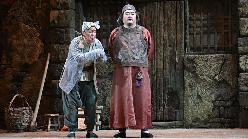 郝苗饰演的媒婆,其唱段以诙谐、幽默的宣叙调为主,其人物形象设定类似中国戏曲中的丑角,趣味十足。