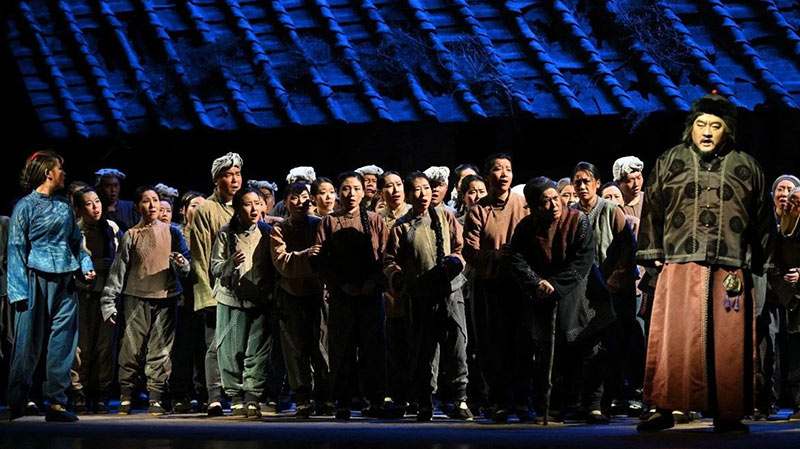 歌剧一开篇,作曲家张千一便独出心裁地以赋格曲作为序曲,旋律线条的纷杂交织,预示了整剧复杂的人物关系与多舛的命运。吕嘉执棒的国家大剧院管弦乐团,将音乐演奏得极具戏剧性,清晰、细腻的声部处理,展示出作曲家丰富的交响化思维,开篇就牢牢“抓”住了观众的眼睛和耳朵。