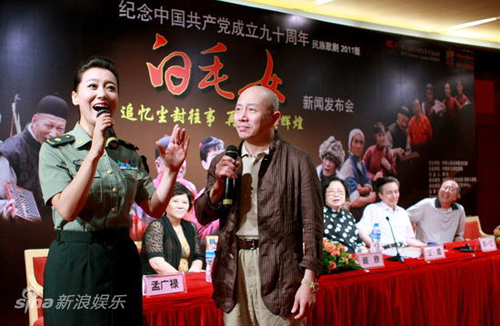 为庆祝中国共产党建党90周年,由中华人民共和国文化部主办,中国东方演艺集团出品,国家大剧院和中国东方演艺集团联合制作,北京市东方华夏艺术中心承办,延安鲁艺文学院校友会协办的2011版大型民族歌剧《白毛女》将于6月30日在国家大剧院首演。6月15日下午,该剧艺术总监、声乐指导王昆,总导演胡玫与谭晶、雷恪生、孟广禄等主演与媒体见面。歌唱家王昆曾是66年前第一代“喜儿”的扮演者,如今她已经是86岁高龄,但仍旧亲自教几位主演演唱。她尤其重视“喜儿”这个角色,选定了总政歌舞团歌唱家谭晶担纲喜儿的A角。谭晶表示,尽管之前演了一些音乐剧和歌剧,但《白毛女》确实是这里面最难的。她笑称:“现在做梦都是哭爹。”