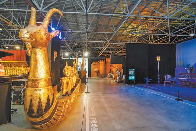 走进台湖图书城舞美库房,沿着逆时针方向前进,话剧《嫌疑人福尔摩斯》的舞台布设带着典型的英伦复古风情,在它对面,歌剧《阿依达》的战船金碧辉煌(右图),依稀能听见环绕桅杆的《凯旋进行曲》。继续向前参观,另一部歌剧《骆驼祥子》则是完全不同的一派风景,灯光投映出斑驳树影,四合院古朴鲜活……为进一步拓展舞美艺术展陈与体验空间,提升国家大剧院舞美资源的活化利用水平,国庆期间,台湖舞美艺术博物馆第二展区面向观众免费开放。
