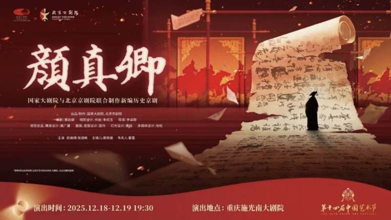 国家大剧院与北京京剧院联合制作的新编历史京剧《颜真卿》,继今年9月在国家大剧院戏剧场圆满落幕后,受文化和旅游部邀请,作为特邀展演剧目,参加第十四届中国艺术节。本次巡演将由戏曲名家张建峰、窦晓璇、翟墨领衔,于12月18日至19日在重庆施光南大剧院连演两场,以京剧之声致敬浩然正气,为山城观众献上这场彰显家国情怀的舞台力作。 点击阅读原文 扫码浏览