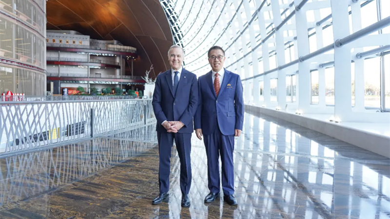 1月16日下午,对中国进行正式访问的加拿大总理卡尼参观中国国家大剧院。